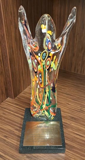 AMBASSADRICE DE L'ANNÉE Présentation de Mme Brigitte Deschênes par Mme la mairesse Julie Dufour L’ambassadrice de l’année est une pionnière dans son domaine d’expertise. Entrepreneure et femme d’affaires, elle est une femme de cœur pour qui la notion du partage transcende le sens commun. Elle qui compte plus de 45 années de pratique dans son domaine rêvait depuis de nombreuses années d’accueillir le congrès de sa corporation à Saguenay. C’est ainsi qu’en septembre 2021, en pleine pandémie, avec tous les défis que cela représentait (on se souvient), le congrès de la Corporation des thanatologues du Québec s’est tenu avec succès à Saguenay avec une programmation haute en couleur et orchestrée de main de maître par notre ambassadrice. Vous l’aurez deviné, notre ambassadrice de l’année est Mme Brigitte Deschênes, directrice générale de la Résidence funéraire du Saguenay. Mme Brigitte Deschênes est diplômée de l’Institut de thanatologie du Québec et détient un certificat en psychologie de l’Université du Québec à Chicoutimi. Elle est co-fondatrice du Groupe d’entraide Grandir ensemble, membre du comité des affaires professionnelles de la Corporation des thanatologues du Québec et membre du comité de certification du Bureau des Normes du Québec. Elle a su faire preuve d’innovation alors que la pandémie paralysait son industrie en proposant l’installation de caméras dans les salons et églises de la région. Conférencière, autrice, et impliquée dans sa communauté et pour sa communauté, c’est pour toutes ces raisons que nous décernons le titre d’Ambassadrice de l’année à Mme Deschênes. Vous pouvez être fière de cette reconnaissance, car il ne fait aucun doute pour nous que votre contribution pour Saguenay est grande.